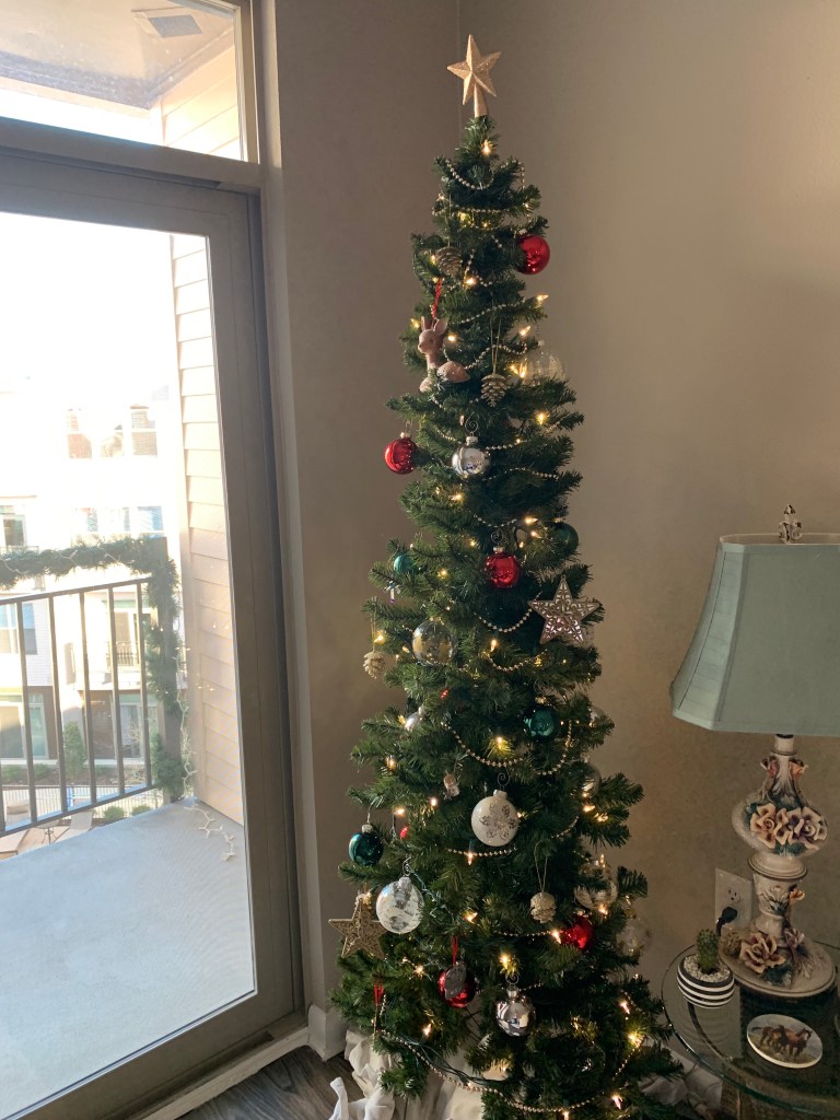 The focal point of the home during the Christmas season is the Christmas tree (or trees). Do you want a real tree, or an artificial tree? Also, think about what size of tree will work in your space. I must add too, that a small living space does not mean that you need a small tree. I have lived in small spaces for years, and have three trees! Two of them are mini trees, but still, don’t skimp on a tree! My main tree is six foot, and skinny. I currently live in an apartment, and previously lived in a one room log cabin, so I needed a tree that could fit in a small space. However, I love that it is still tall so it feels like a real tree. Skinny trees are great for tight spaces!